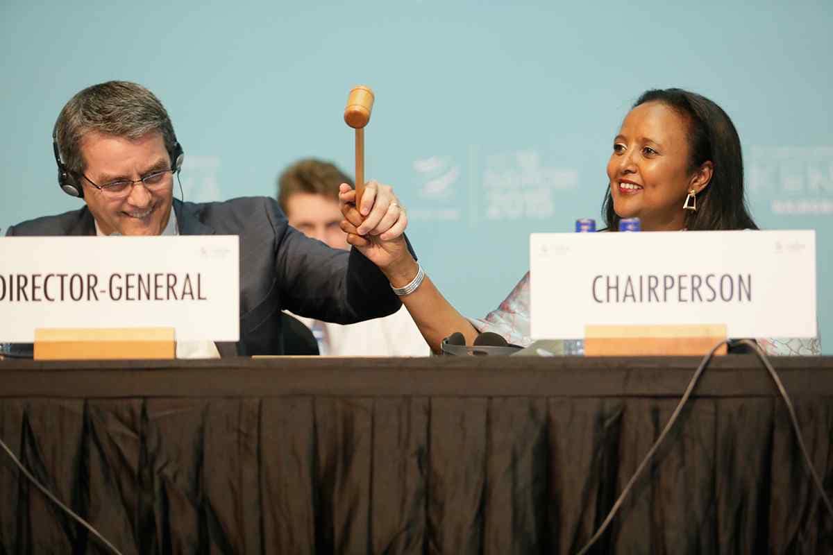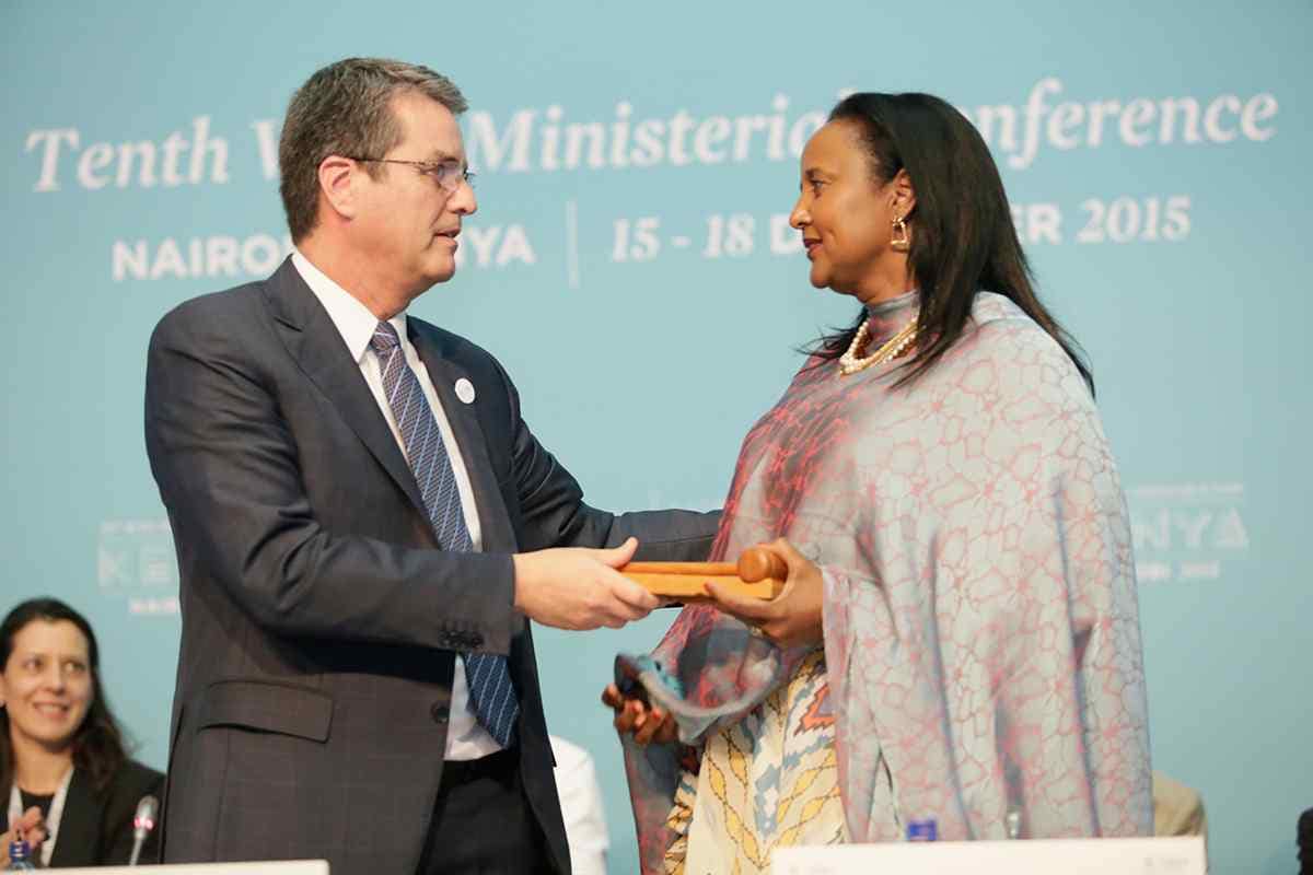 The WTO’s 10th Ministerial Conference was held in Nairobi, Kenya, from 15 to 19 December 2015. It culminated in the adoption of the “Nairobi Package”, a series of six Ministerial Decisions on agriculture, cotton and issues related to least-developed countries (LDCs). The Conference was chaired by Kenya’s Cabinet Secretary for Foreign Affairs and International Trade, Amina Mohamed.